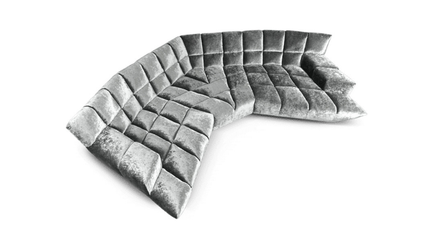«Urbane Imposanz versus Retro-Futuristik – Cloud 7 spielt mit Spannungen: Die Rautenstruktur kommt vollständig ohne 90°-Winkel aus. So entsteht die surreale, einladende Illusion eines Fluchtpunkts. Gleichzeitig verpasst die Geometrie der voluminösen Silhouette eine gute Portion Dynamik. Mit der durchdachten Kassettenheftung schafft Cloud 7 ein einzigartiges Gefühl von Ruhe: Man sitzt darauf und gleichzeitig mittendrin.»