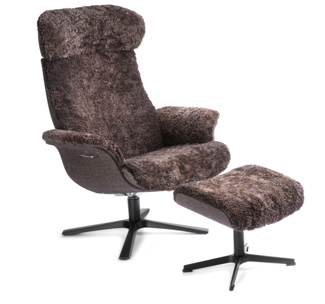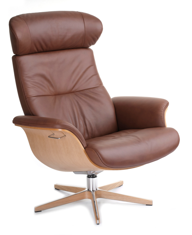 Auch funktional überzeugt der Sessel: Die drehbaren Aluminium-Füße in moderner X-Form verfügen über eine Memory-Funktion und bewegen sich nach dem Aufstehen automatisch in ihre Ursprungsposition zurück. Für noch mehr Komfort ist ein passender Hocker erhältlich.