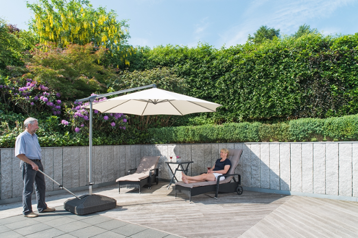Mit dem LIRO Schirmständer erwerben Sie einen hochwertigen Sonnenschirm-Ständer, dessen patentierte, weltweit einzigartige Konstruktion es Ihnen ermöglicht, den eingesetzten Sonnenschirm in aufrechter Körperhaltung an jede beliebige Stelle auf Ihrer Terrasse zu verfahren. So können Sie den Sonnenschirm endlich da aufstellen, wo er auch wirklich benötigt wird. Das edle Design und die kompakten Abmessungen machen den Schirmständer nicht nur praktisch, sondern auch zu einem besonderen Blickfang, der perfekt zu hochwertigen Outdoormöbeln passt und sich in jedes Ambiente harmonisch einfügt.